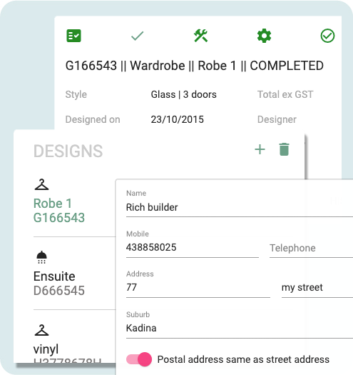 Design wardrobes, shower screens and mirrors. Manage installers and your entire production process